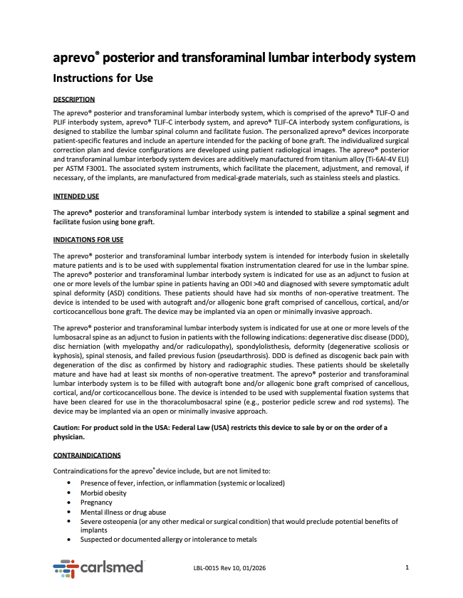 Learn more about aprevo® by accessing the resources below. These resources include IFUs, brochures, and more.